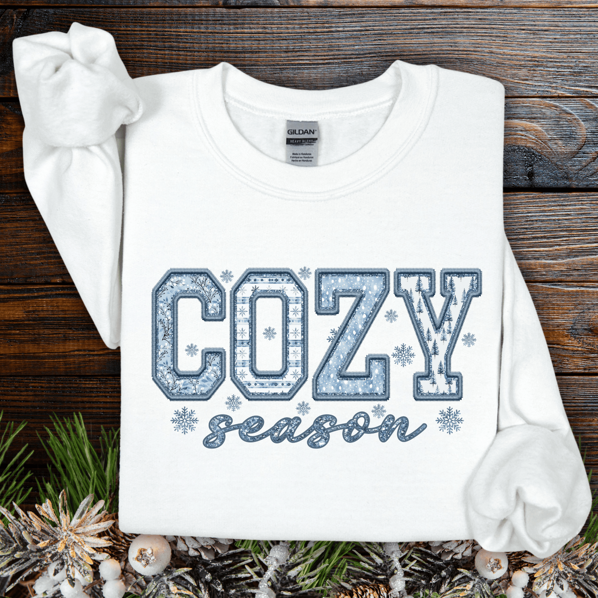 Embrace the charm of chilly days with our Cozy Season Sweatshirt, designed to keep you warm and stylish throughout the fall and winter seasons. Note - this design is printed on and is not real patchwork.