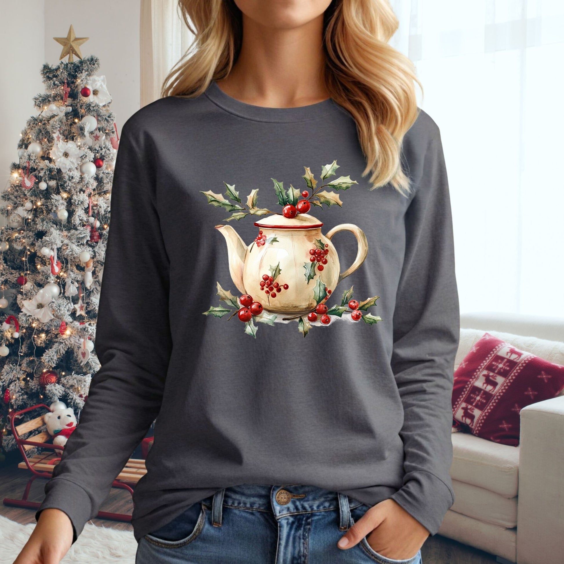 Farmhouse Christmas Teapot Long Sleeve Tee