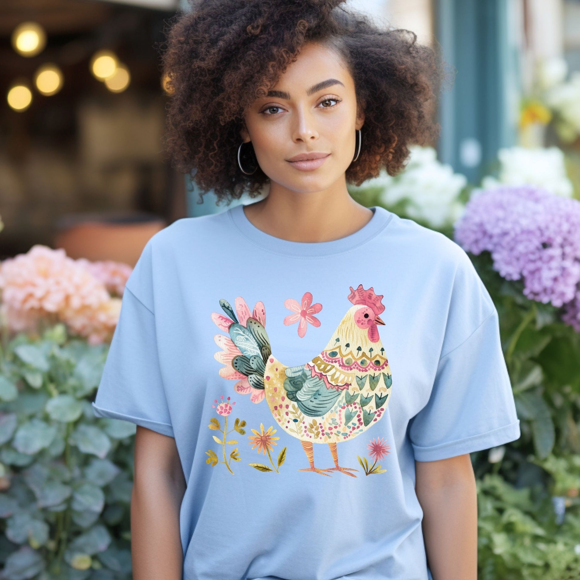 Folk Art Rooster and Flowers T-Shirt