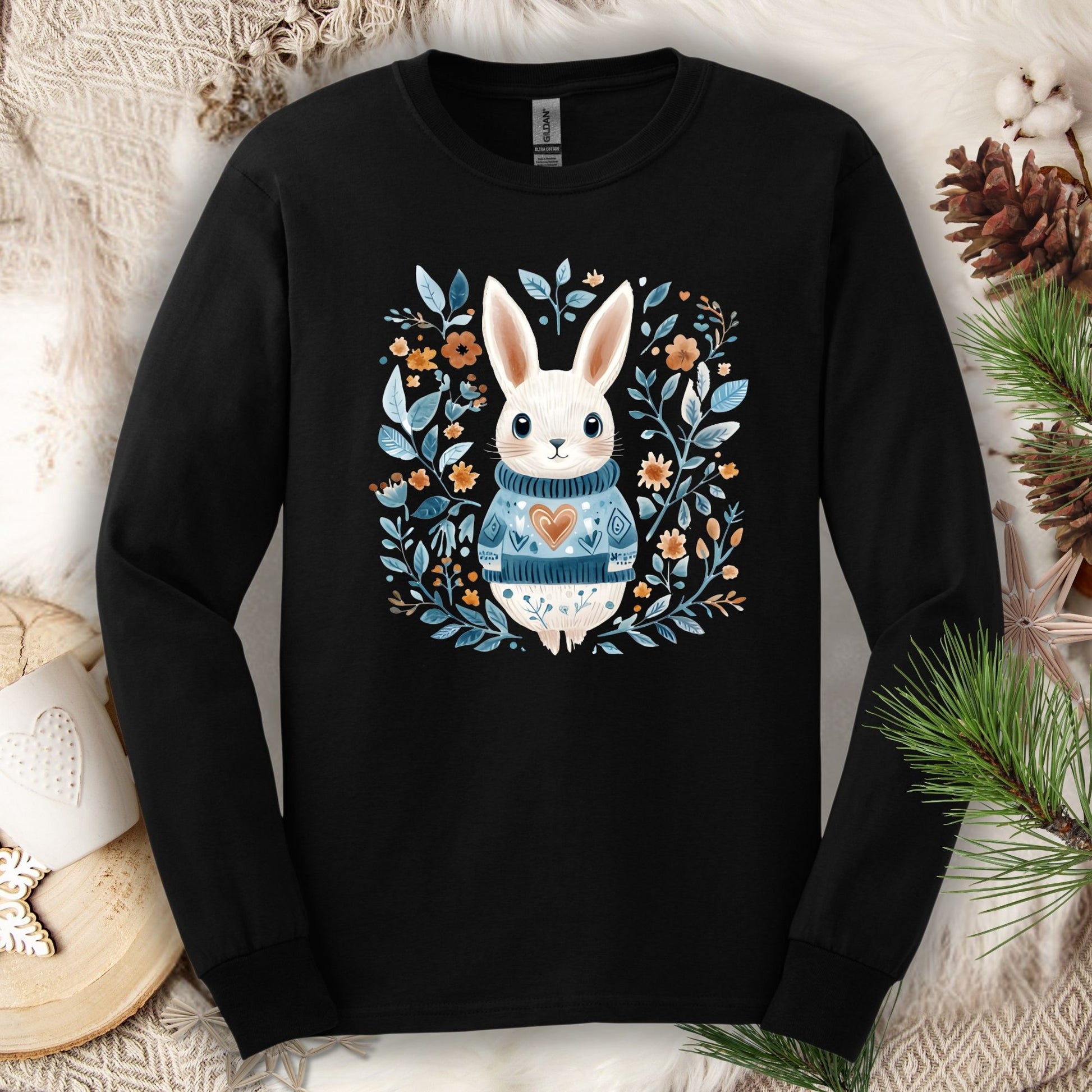 Embrace the charm of winter with our Folk Art Winter Rabbit Watercolor T-Shirt. This unique piece showcases an intricate watercolor design featuring an adorable rabbit dressed in a fair isle sweater, surrounded by delicate winter foliage. Perfect for animal lovers and art enthusiasts alike, this t-shirt seamlessly blends artistic flair with everyday comfort.