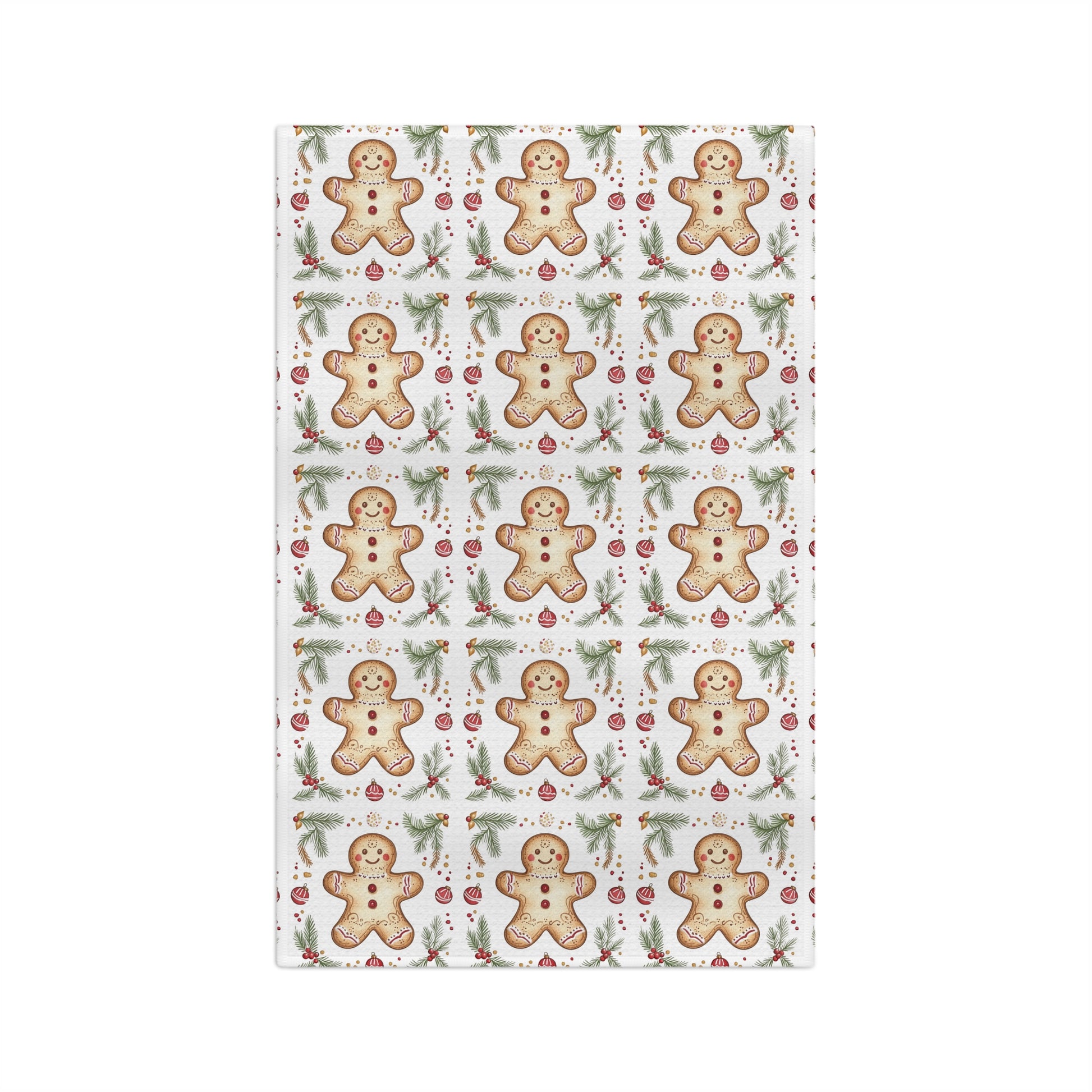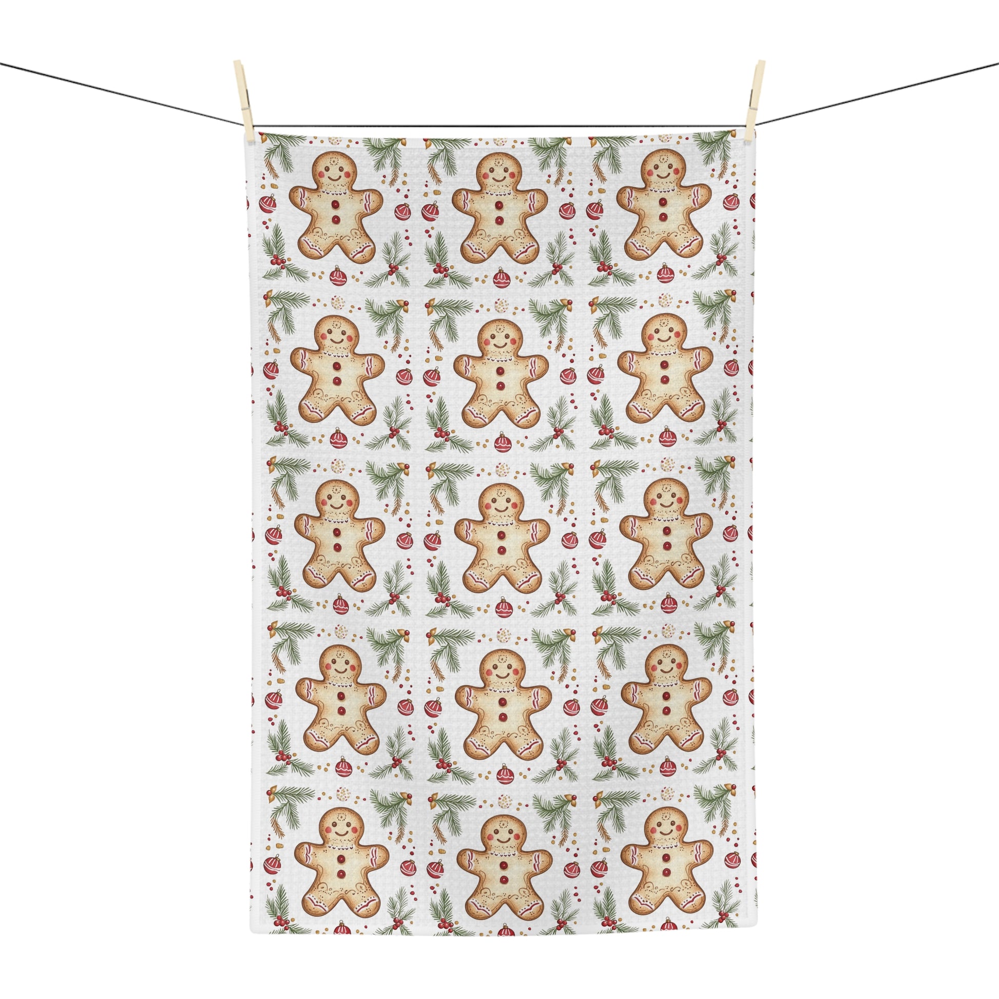 Soft, quick-drying microfiber tea towel printed with a repeating gingerbread and holly pattern. The warm, hand-drawn cookies and sprigs of greenery bring a cozy, nostalgic holiday kitchen vibe—like the smell of cinnamon and baking drifting through a home filled with soft lights. Lightweight and highly absorbent, this towel slips into everyday tasks: wiping counters after rolling dough, laying under a plate of freshly iced cookies, or brightening a festive display. The hemmed edges and sturdy weave hold up to repeated use, while the one-sided print keeps the pattern vivid where you need it most.