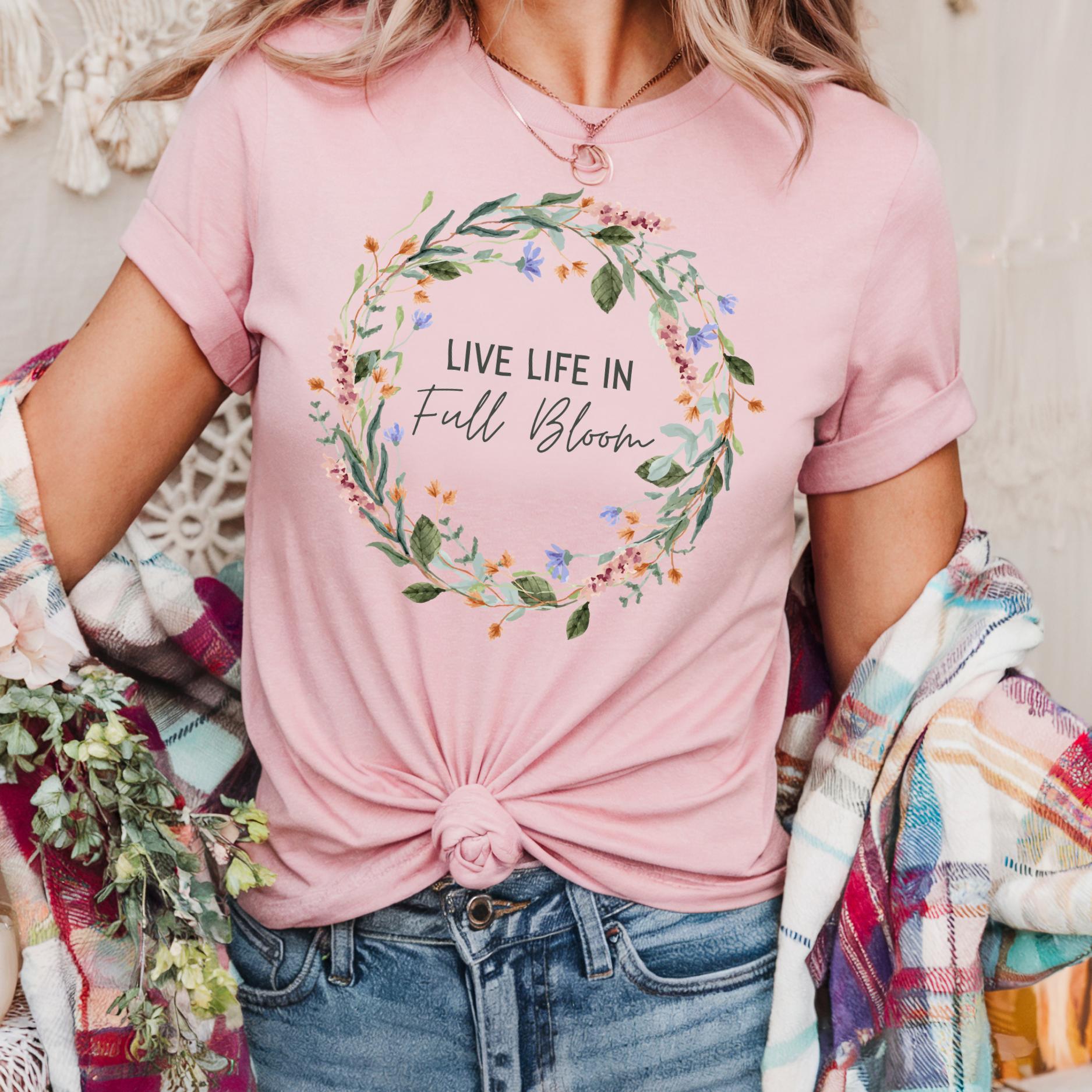 I love this shirt! The pink is vibrant and fun! Great design. I get lots of compliments when I wear it! I will be ordering more shirts!