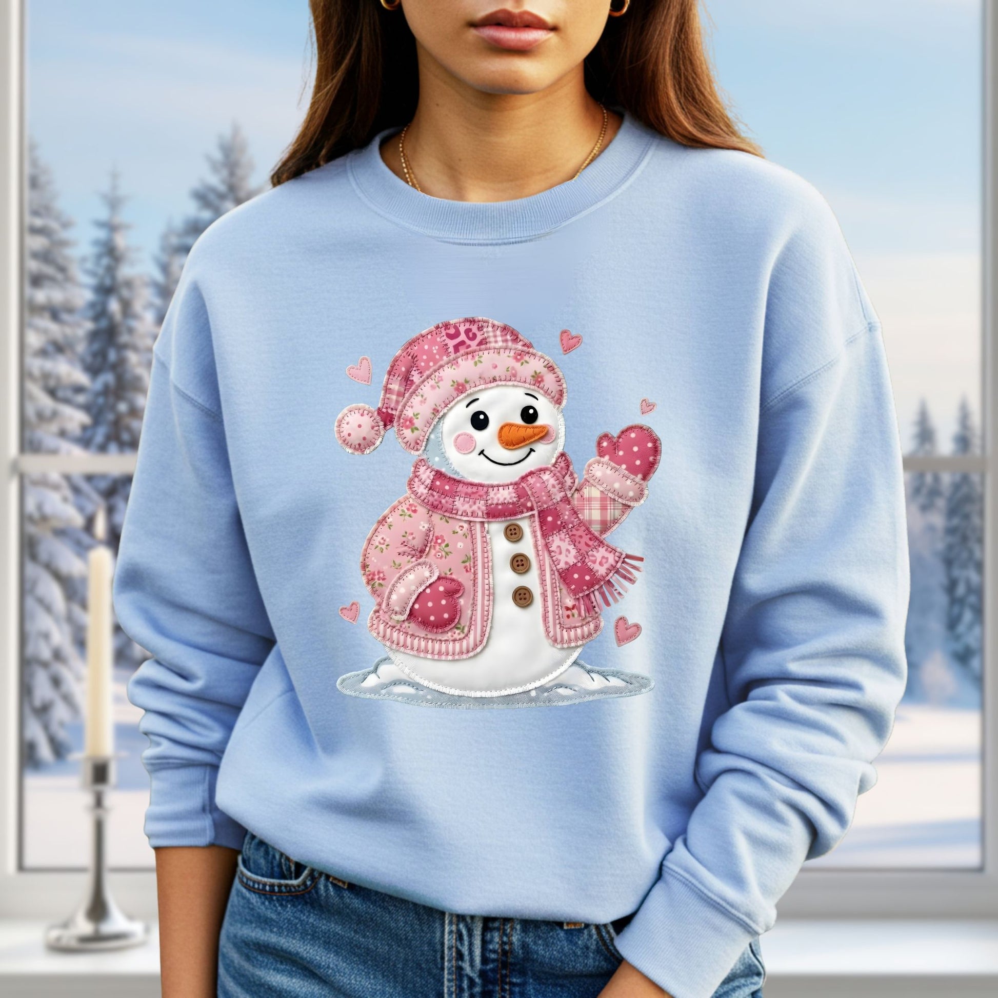 Celebrate the love season with our Adorable Valentine's Day Sweatshirt, featuring a charming pink patchwork snowman adorned with hearts. This delightful piece is not only perfect for cozying up on chilly days but also makes a fun and festive statement for your Valentine's Day celebrations.