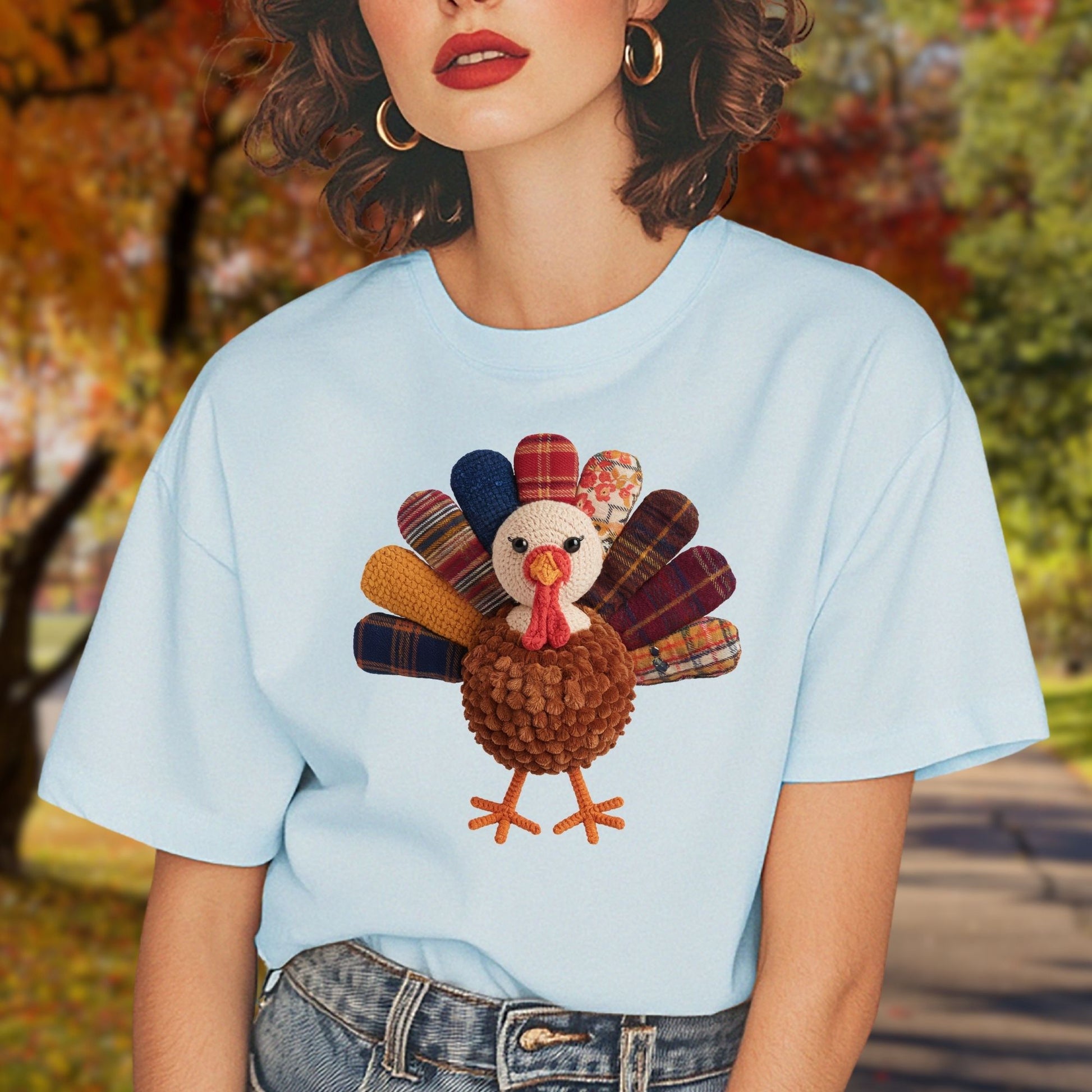 Bring on the cozy, handmade vibes with this Patchwork Hook Yarn Turkey tee—soft, preppy, and perfectly nostalgic. 🦃💕 With warm autumn tones and a stitched, hook-yarn look, this design feels like a sweet mix of vintage Thanksgiving décor and cottage charm. Please note this design is professionally printed on the top and is not embroidered or sewn on.